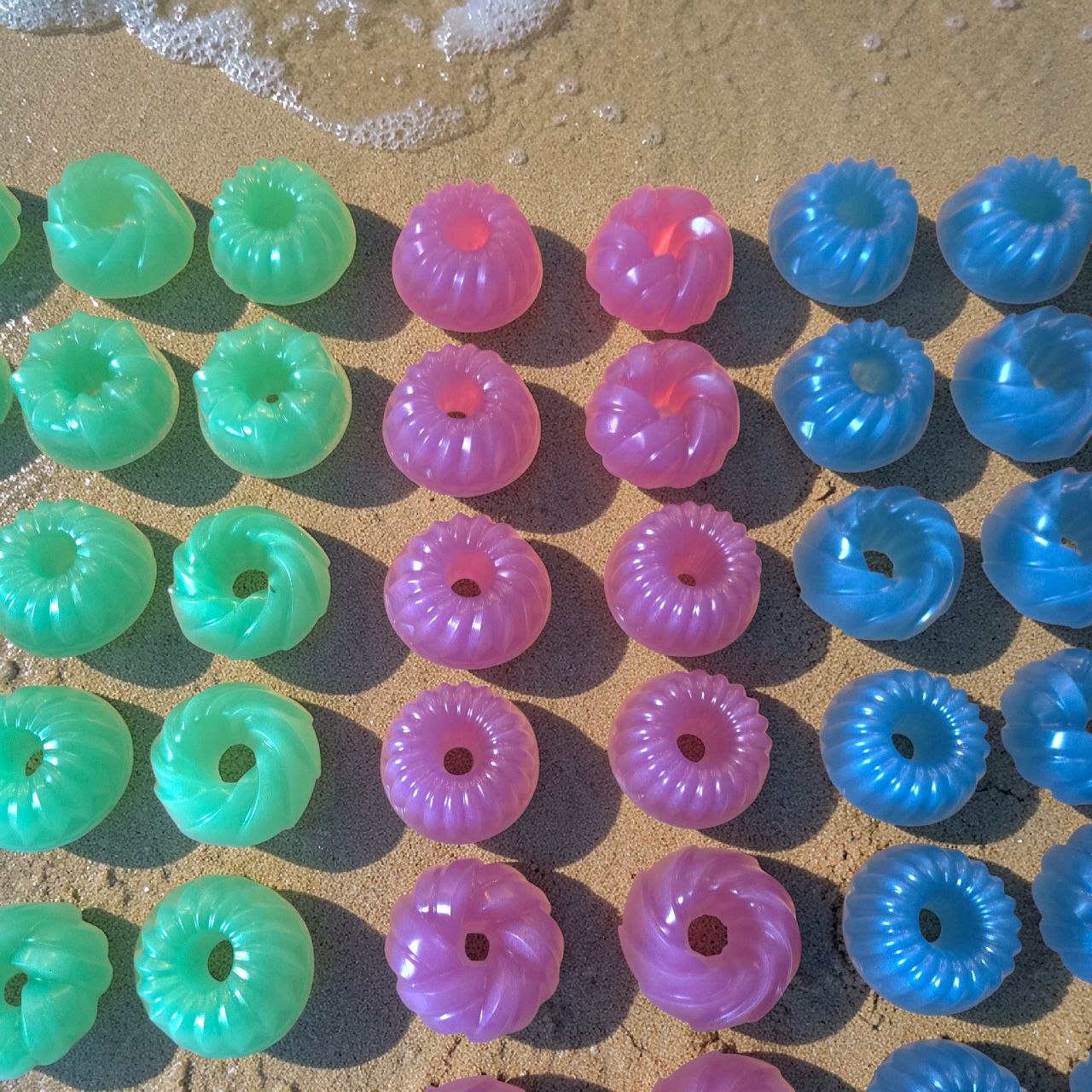 Bath bombs designed not only to relax and alleviate stress but also to infuse the bathwater with pleasant fragrances and leave the skin feeling moisturized.
